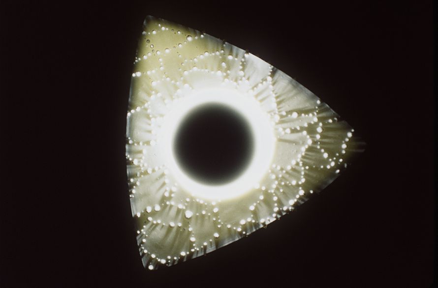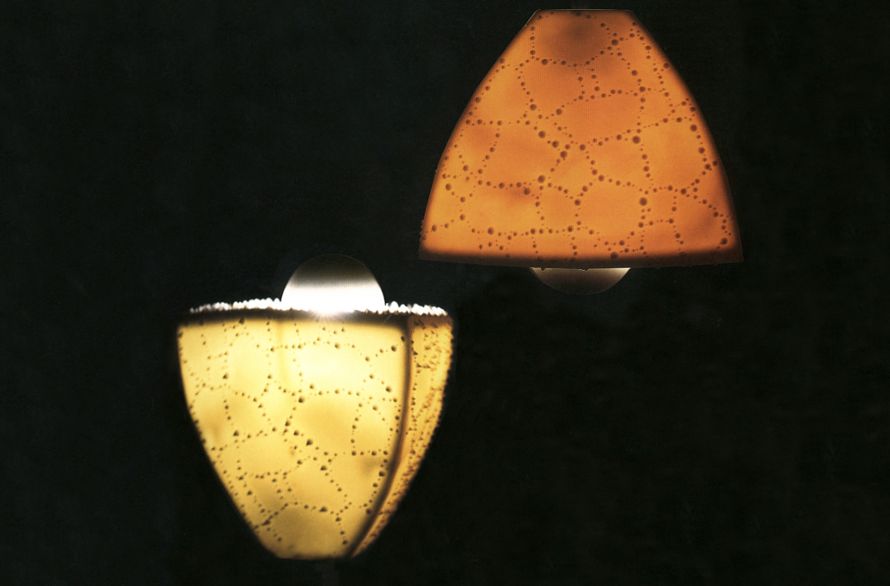 Eine der faszinierendsten Eigenschaften von Porzellan ist seine Transluzenz, die in einem beleuchteten Relief sehr wirkungsvoll dargestellt werden kann. Das Relief dieses Lampenschirms ist eine Übersetzung einer vergrößerten Glasur, deren Bezug auf mikroskopische Ansichten ein erstaunliches skulpturales Ergebnis eröffnet. Das Licht lädt zum Anfassen und Erforschen ein, provoziert Interaktionen und regt den Geist der Menschen an.